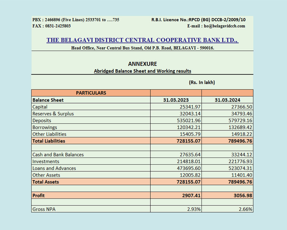 FINANCIAL POSITION OF THE BANK(RS. IN LAKHS)